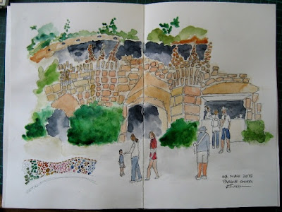 1º Retiro de Diários Gráficos "O espiritual no Desenho", organizado pelo Mário Linhares, onde me trocaram as voltas, pois eu ia só a acompanhar a Ana, e levava uma câmara fotográfica para fazer os meus registos, mas na primeira saída, deram-me um caderno e apesar da minha recusa, o Mário Linhares, disse que eu ficaria com o caderno e que fizesse com ele o que quisesse.
